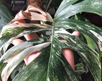 Variegated Monstera Deliciosa Albo Variegata Borsigiana 1 Leaf Monstera Albo Borsigiana Node With Aerial Root