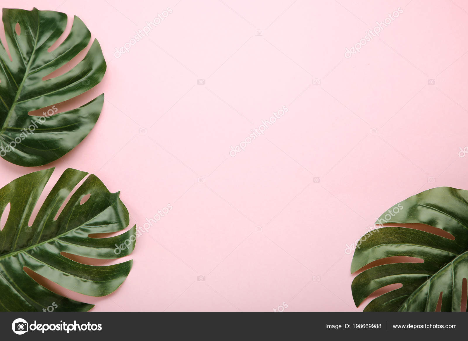 Tropical Monstera And Palm Leaves On A Light Pink Background A Monstera Leaves Pink Background