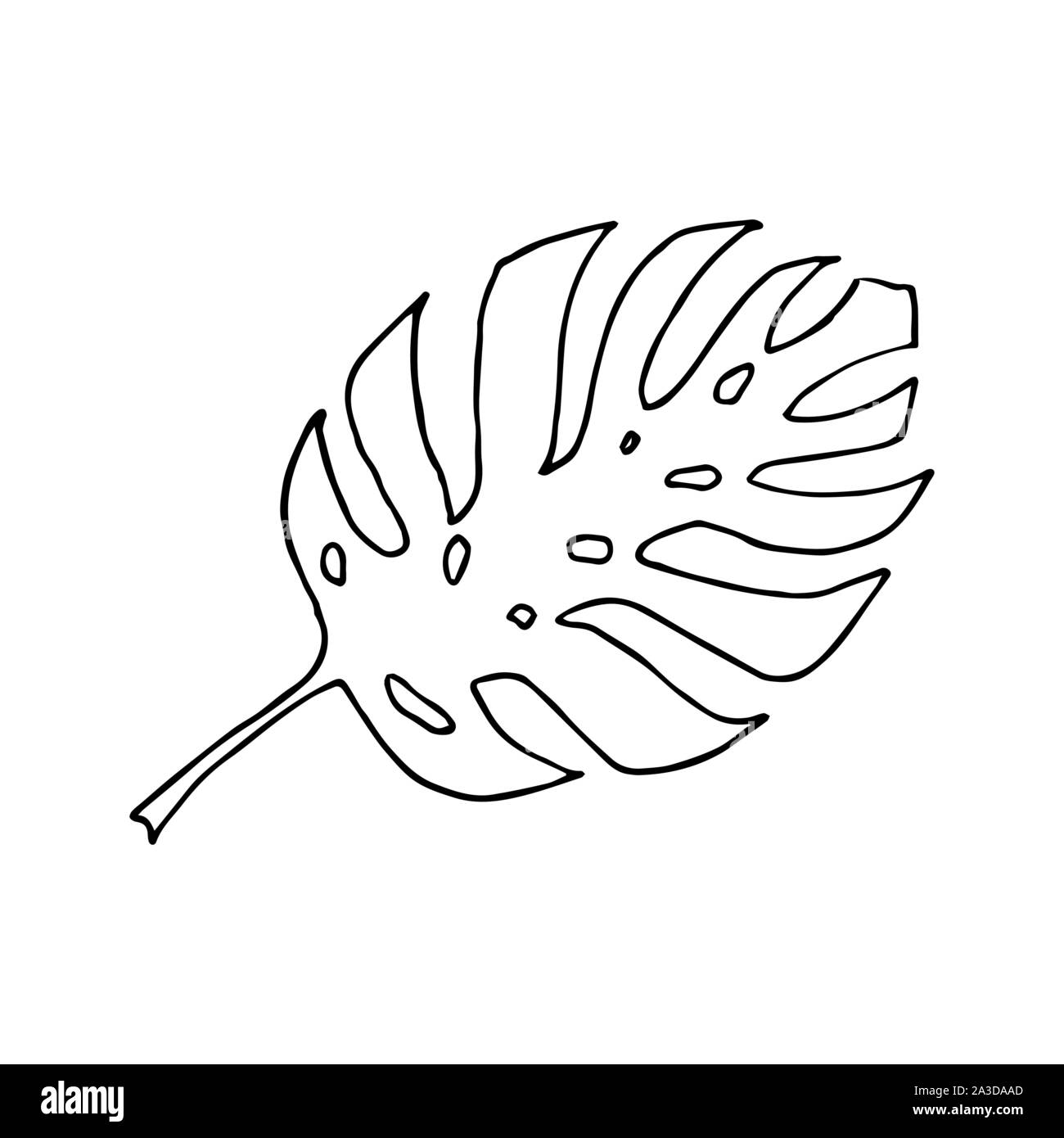 Monstera Plant Leaf Line Art Doodle Sketch Black Outline On Monstera Plant Leaf Outline www.alamy.com